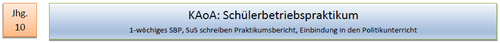 Die inhaltliche Vor- und Nachbereitung des SBP wird im Rahmen des Politikunterrichts in Jg. 10 durchgeführt. Die Betreuung während der Zeit im Betrieb findet durch die Klassenlehrer, in der Regel telefonisch, statt.
