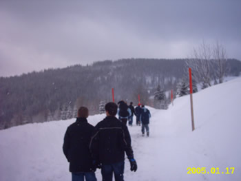 einen Spaziergang. Da der Schnee so hoch lag und ganz frisch
