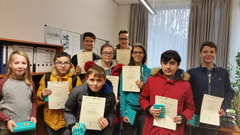 Unter den 21 am 13.12.209 ausgezeichneten Schülerinnen und Schüler befanden sich zwei Schüler unserer Schule. Nikolai Morasch erreichte den zweiten Platz in der Jahrgangsstufe 7. Jorin Hilbert gewann den ersten Preis als Bester der Klassenstufe 5 und wird am 22.02.2020 an der Landesrunde NRW in Hamm teilnehmen. Hierzu drücken wir ihm schon jetzt die Daumen.